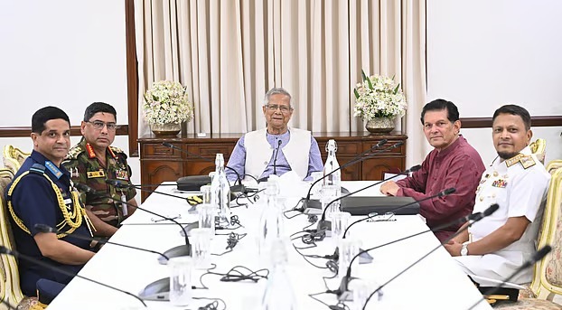 আগামী ফেব্রুয়ারির প্রথমার্ধে অনুষ্ঠেয় ত্রয়োদশ জাতীয় সংসদ নির্বাচন শান্তিপূর্ণভাবে সম্পন্ন করতে এবং নির্বাচনকে কেন্দ্র করে নিশ্ছিদ্র নিরাপত্তা বজায় রাখতে সব ধরনের প্রস্তুতি নিতে তিন বাহিনীর প্রধানদের প্রয়োজনীয় নির্দেশনা দিয়েছেন প্রধান উপদেষ্টা অধ্যাপক মুহাম্মদ ইউনূস।